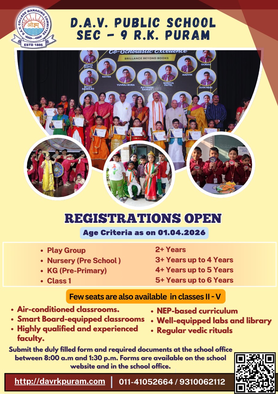 DAV PUBLIC SCHOOL, R.K.Puram Sec-9, New Delhi - 110022 Phone : 011-41052664, 9310062112 E-Mail :dav_rkpuram@yahoo.co.in Website : davrkpuram.com